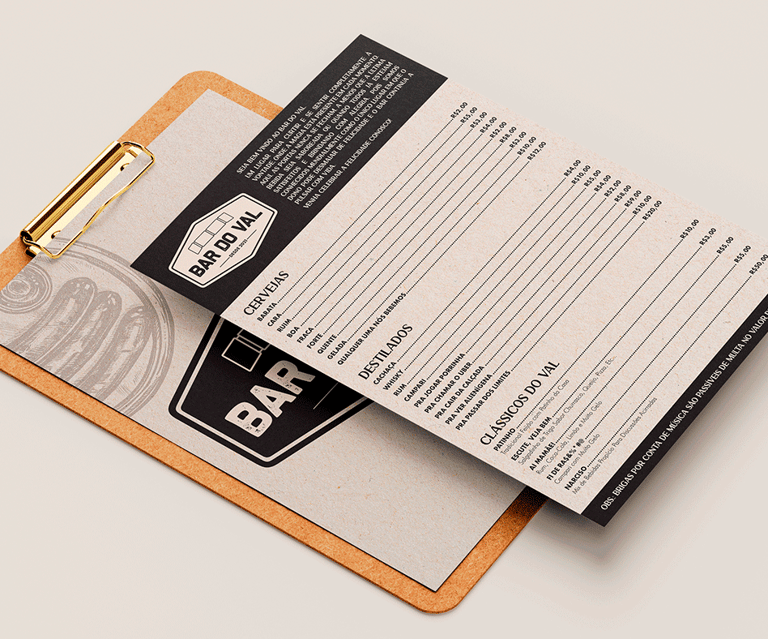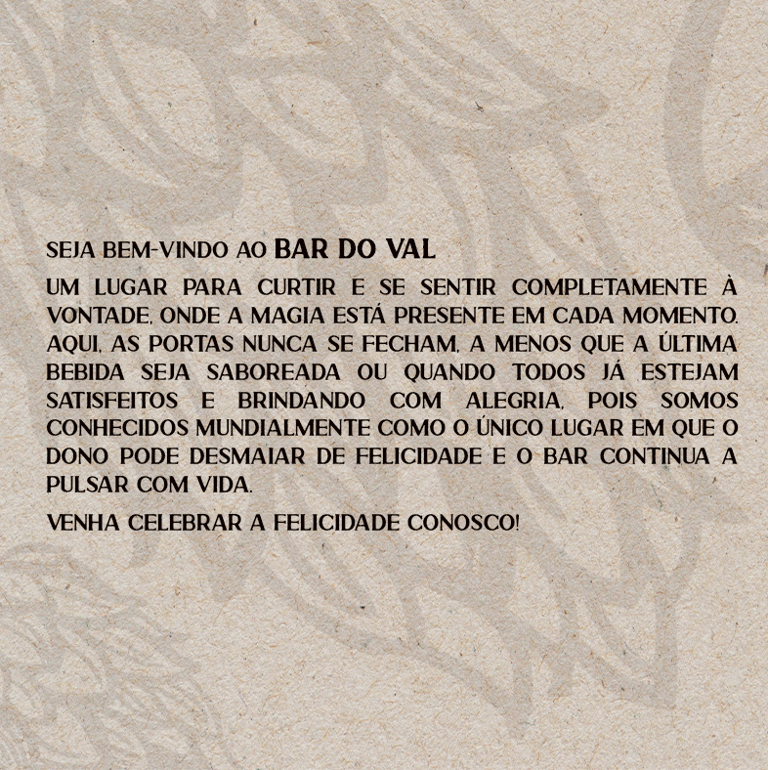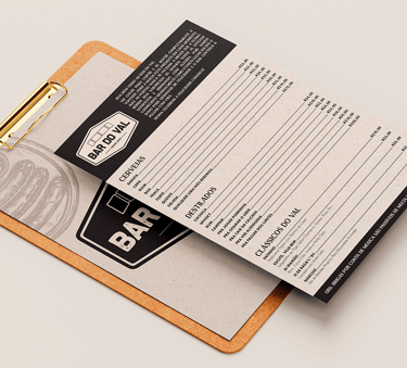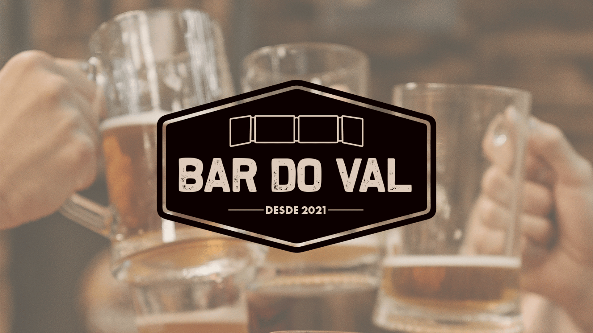 Logomarca e identidade visual para o Bar do Val, estabelecimento fictício criado como tema de aniversário.